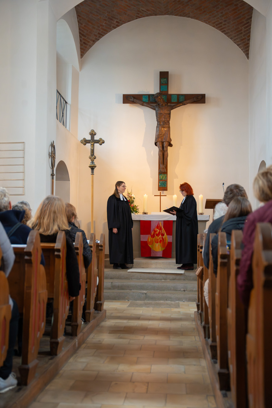 Beilngries, 17. März 2026 - Am vergangenen Sonntag wurde Laura Poirot in der vollbesetzten Christuskirche Beilngries von Dekanin Christiane Murner feierlich in ihr Amt eingeführt. In ihrer Ansprache gab sie der neuen Beilngrieser Pfarrerin ein Wort Friedrich Schillers mit auf den Weg: „Strebe nach Ruhe, aber durch das Gleichgewicht, nicht durch den Stillstand deiner Tätigkeit." Doch mit Stillstand sei hier im Süden des Dekanats zusammen mit Pfarrerin Poirot definitiv nicht zu rechnen, verspüre die Gemeinde doch bereits einen guten Aufschwung, so Dekanin Murner.