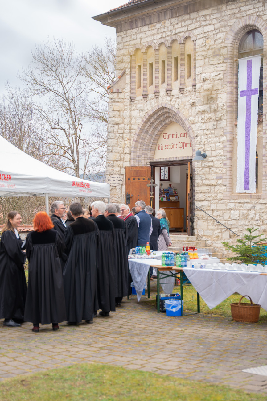 Wunderbares Orgelspiel und der Chor „Singt" umrahmten den festlichen Gottesdienst musikalisch. Bereits bei ihrer Einführung bestieg Laura Poirot selbst die Kanzel und predigte als Pfarrerin ihrer neuen Gemeinde. Nach dem Gottesdienst folgten Grußworte aus den Landkreisen Eichstätt und Neumarkt, aus Kommunalpolitik, Schule, Nachbarschaft und Kirchenvorstand – ein buntes Bild der Verbundenheit, die der neuen Pfarrerin aus Beilngries entgegengebracht wurde. Beim anschließenden Empfang vor der Kirche gab es Sekt, Häppchen und Riesenbrezen – und viel Gelegenheit, Laura Poirot persönlich willkommen zu heißen.